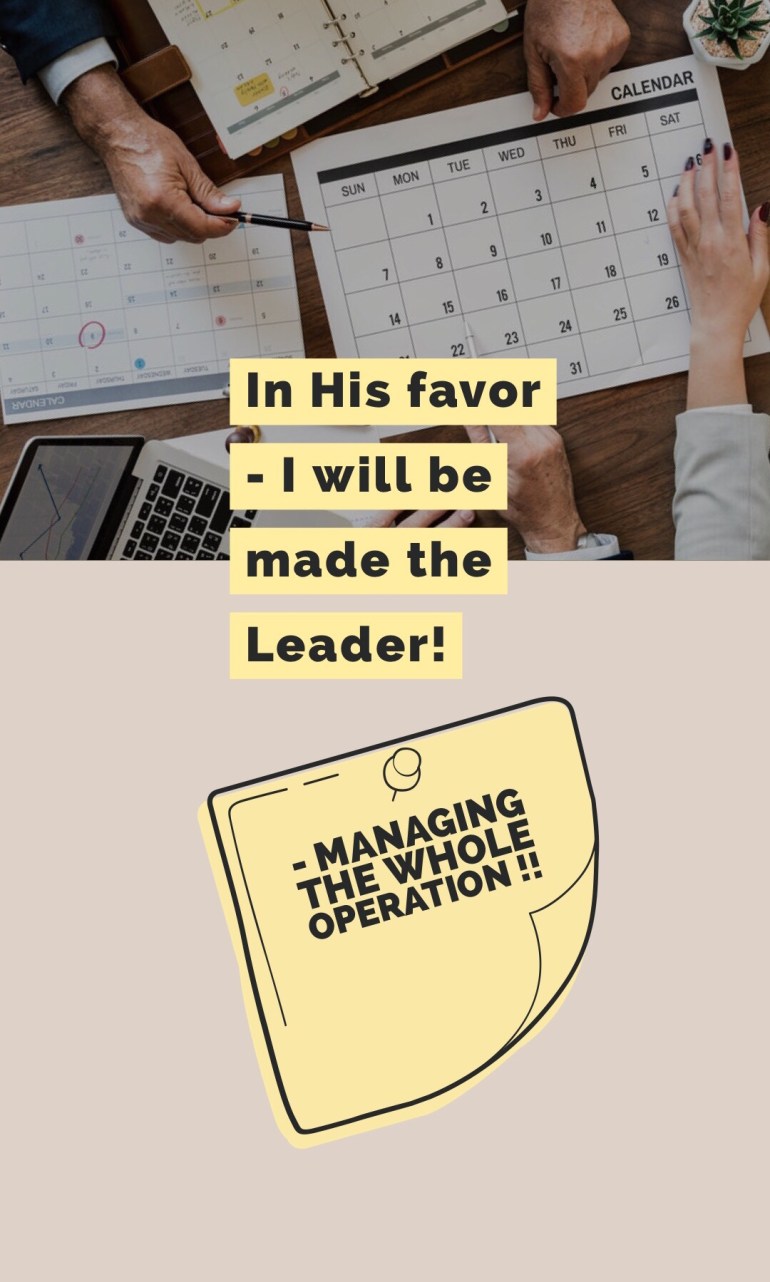 Father in Jesus Name – thank you Lord for your favor that makes me in-charge of the whole operation in Jesus Name amen!