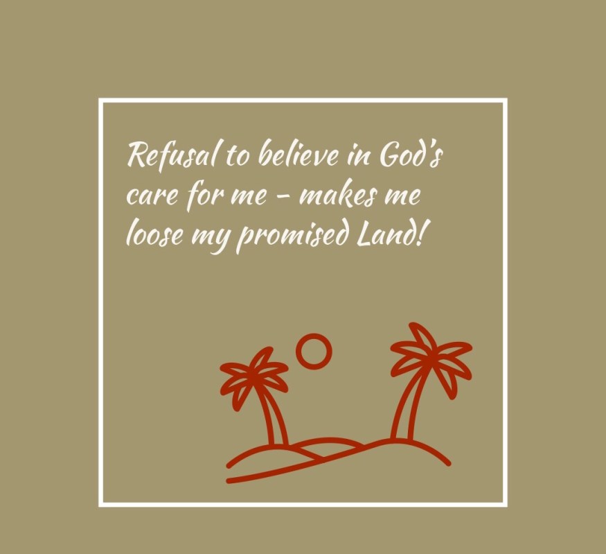 • Disbelief in Gods promise to care for me displeases God and makes me loose my promised Land