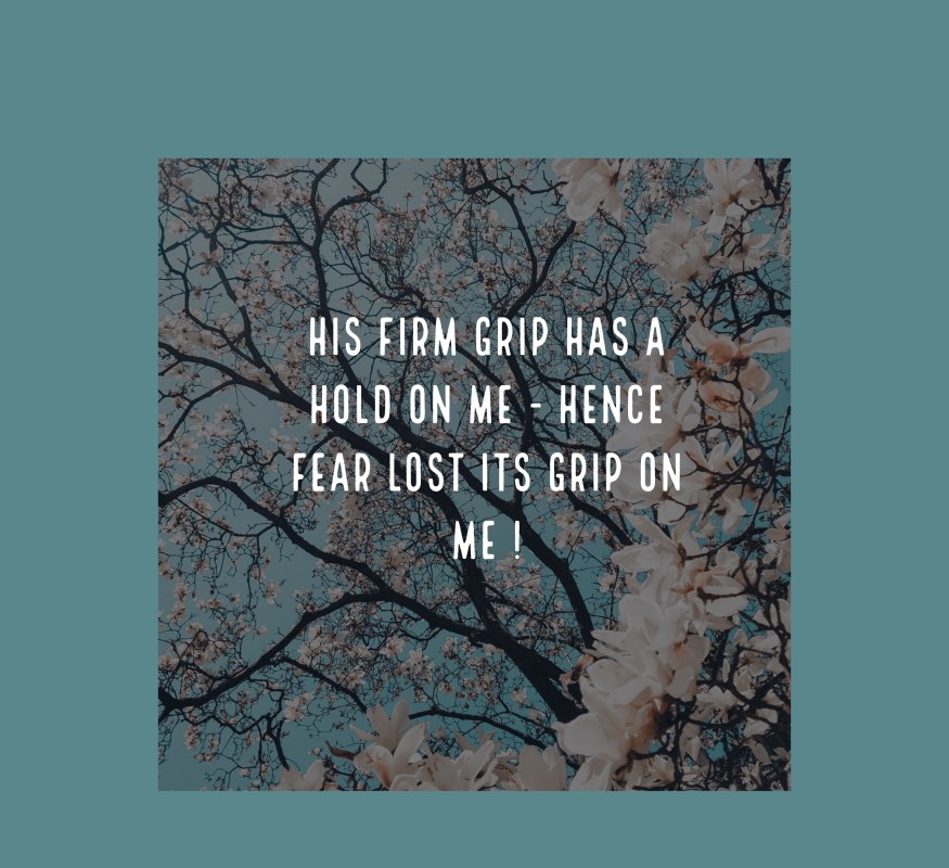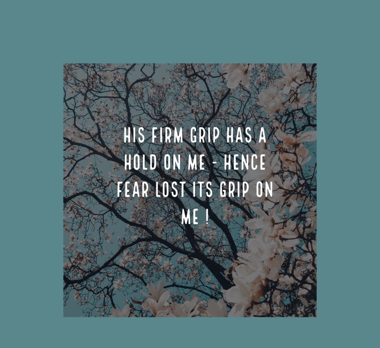 My Lord my God tells me Not to be afraid – Hence I will not be afraid – because He is right here with me to help me.He tells me Fear not – hence I do not fear – because He is has a firm grip on me. He tells me don’t panic – hence I don’t panic – because He never lets me go. He upholds my right hand. The external one has the hold of my right hand, He whispers in my ears not to be afraid. He is right with me , dwelling in me. When He dwells in me Fear needs to empty me.. Fear will have no place in me because He has occupied me. His love has occupied me!