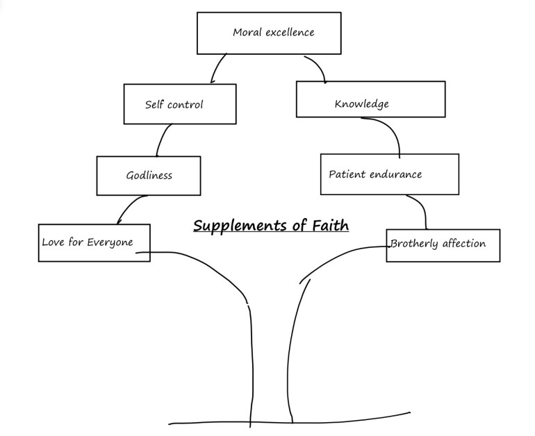 “In view of all this, make every effort to respond to God’s promises. Supplement your faith with a generous provision of moral excellence, and moral excellence with knowledge, and knowledge with self-control, and self-control with patient endurance, and patient endurance with godliness, and godliness with brotherly affection, and brotherly affection with love for everyone.”