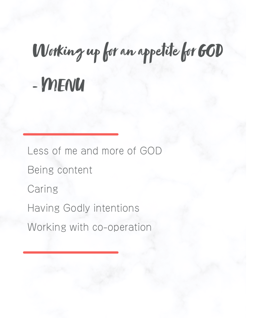 When you care for others and drive your family and people around you through love and encouragement then you will be surely cared for. You need to walk in the spirit of co operation not competition because love is not competitive. Gods kingdom doesn’t work on competition mode but in love mode. This is how His family is called to be.. to encourage each other and love each other without any competition but rather through co operation. When you do this .. You are simply working towards Gods desires with right Godly mind and you will reap His promises. You are working towards having an appetite for God and for sure you will eat the best meal.. Meal that’s all preplanned by the sovereign God just to suit your taste buds. Isn’t it amazing? Let’s enjoy the blessed life He has kept in store for us.