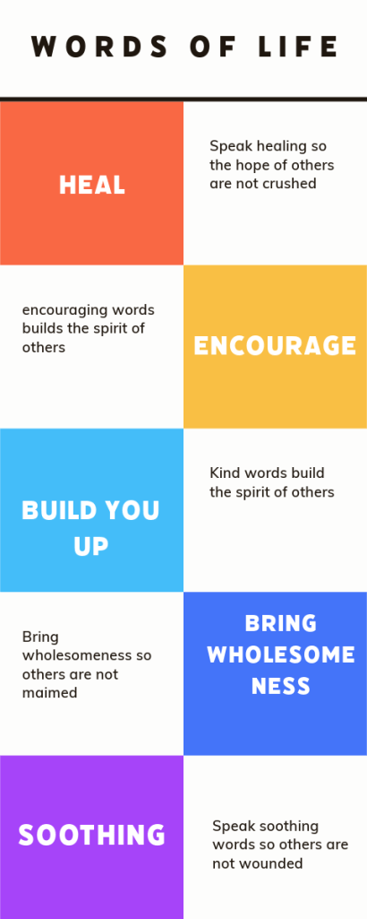 “When you speak healing words, you offer others fruit from the tree of life. But unhealthy, negative words do nothing but crush their hopes.”